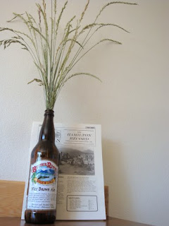I'm still not quite adjusted to the idea of throwing perfectly good glass bottles away. In the kitchen, this grass and glass display uses a 22-ounce Bitterroot Brewery Nut Brown Ale bottle and long strands of seeded grass gathered from a neighboring field.